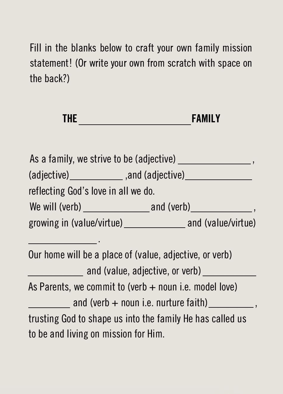 Family Mission Statement Card – 5×7 Double sided